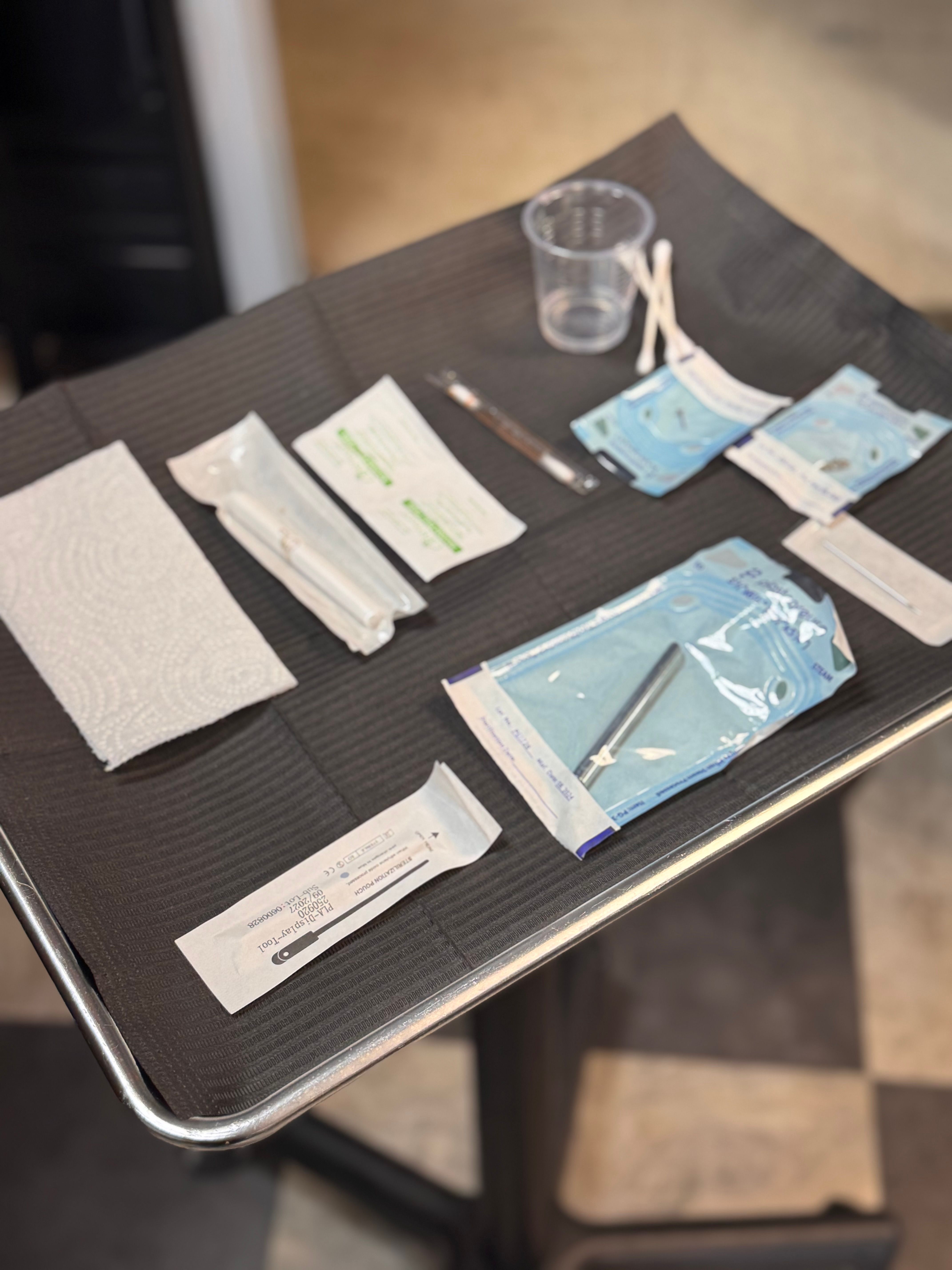 I started off by completing a health and safety waiver, and then Dani explained the process to me step by step. She also prepared her sanitary set up tray.