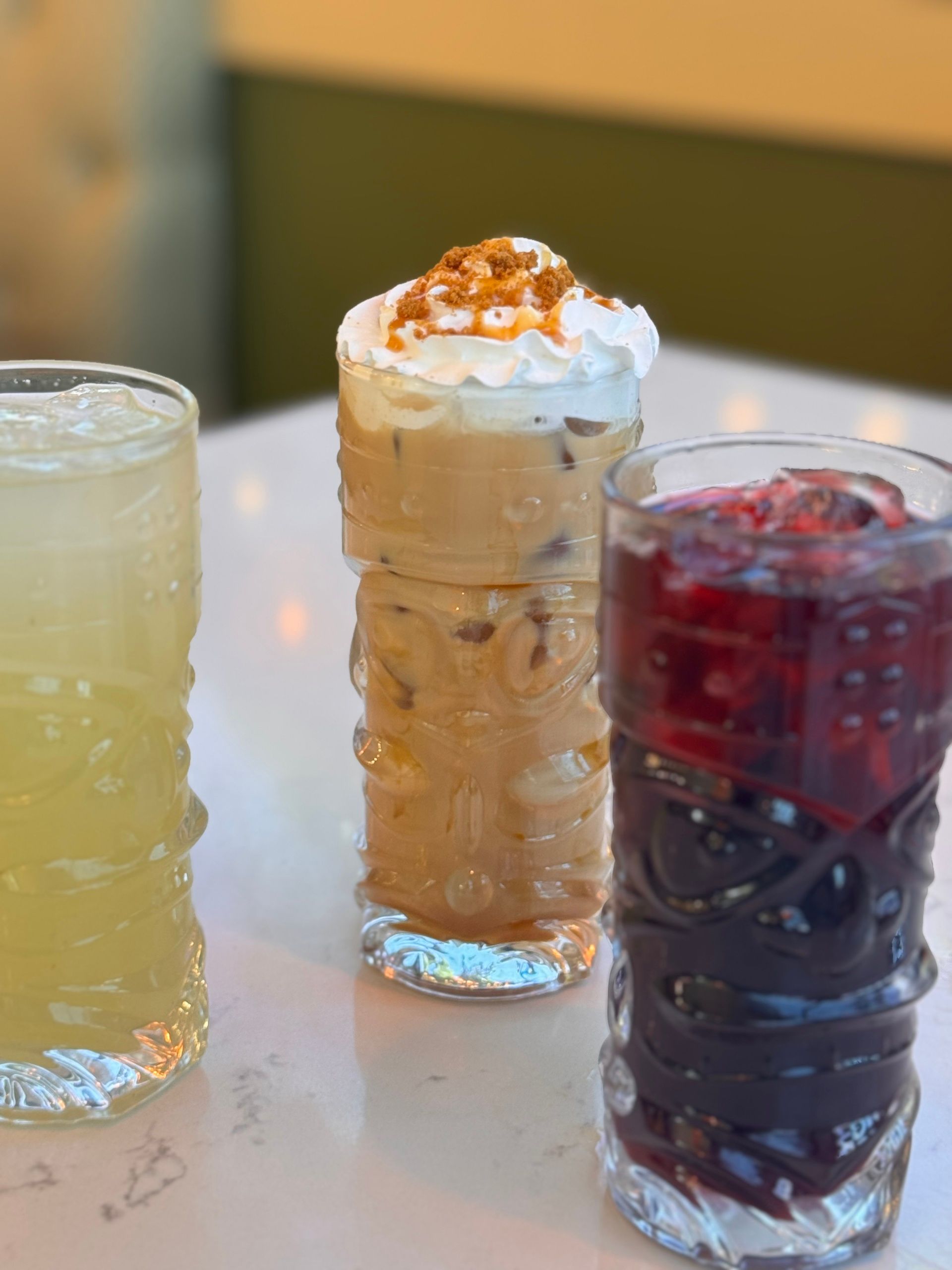 Dear Dad’s is located at 3929 Battleground Ave. right beside Elizabeth’s Pizza. This place is insanely popular and always very busy. I was very fortunate to be invited back out to do another review. First I started off with a Biscoff latte, cucumber, Agua Fresca, and an Agua de Jamaica.