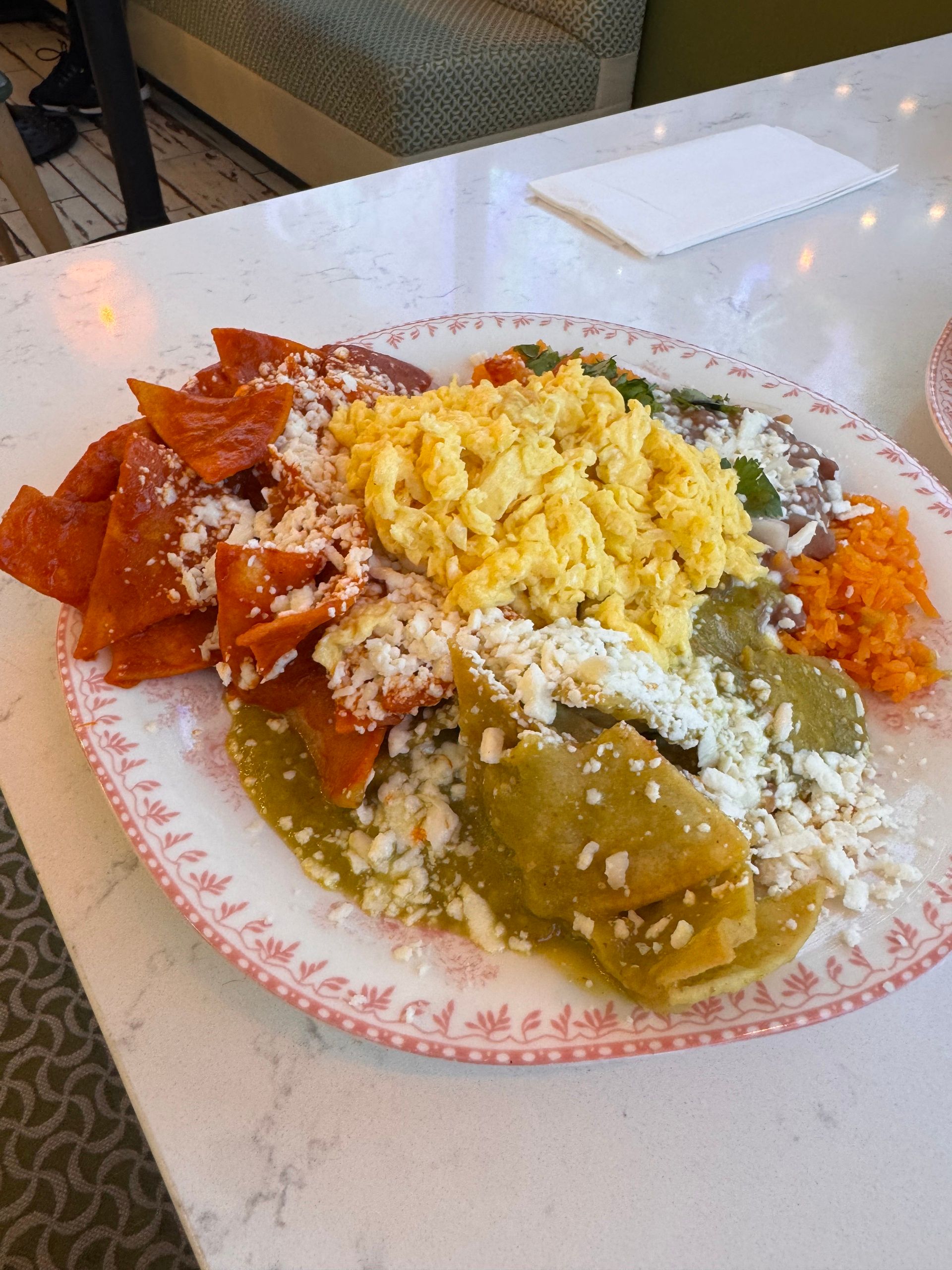 This is my first time ever having Chilaquiles and I am so blown away with the level of flavor here. The green salsa or salsa Verde here is the best salsa Verde I’ve ever had and I’m pretty sure it’s the best around. The flavor is fresh bright and sharp -very delicious. The red salsa was spicier than the green and the rice and beans were flavorful and moist. This was my favorite dish of the entire visit.