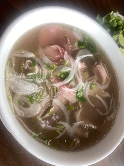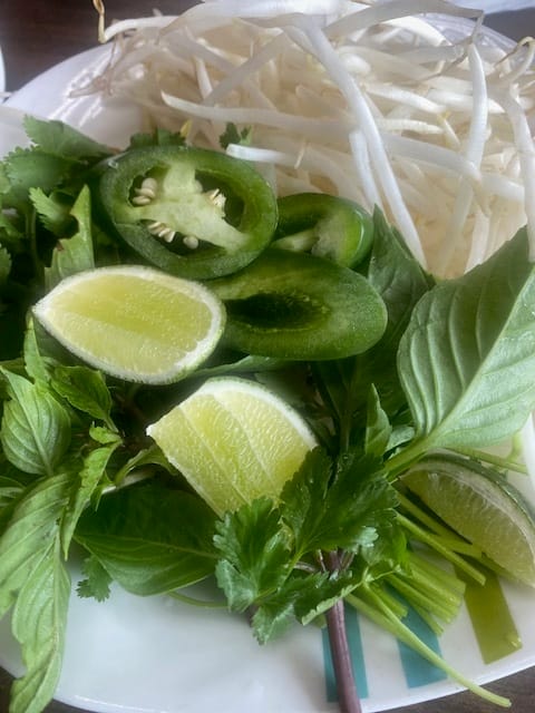 I ordered a medium sized bowl of Beef Pho which comes with a nice place of veggies to put in the soup. Fresh jalapenos, bean sprouts, lime, cilantro and mint are included.