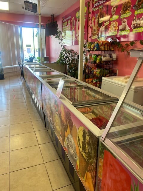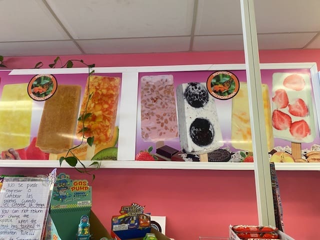 The menu is in Spanish but there are pictures that helped me to know what the items were; the staff was also friendly and helpful. I decided I would get a watermelon popsicle. There was the option to get it dipped in chocolate but I decided to keep it plain.